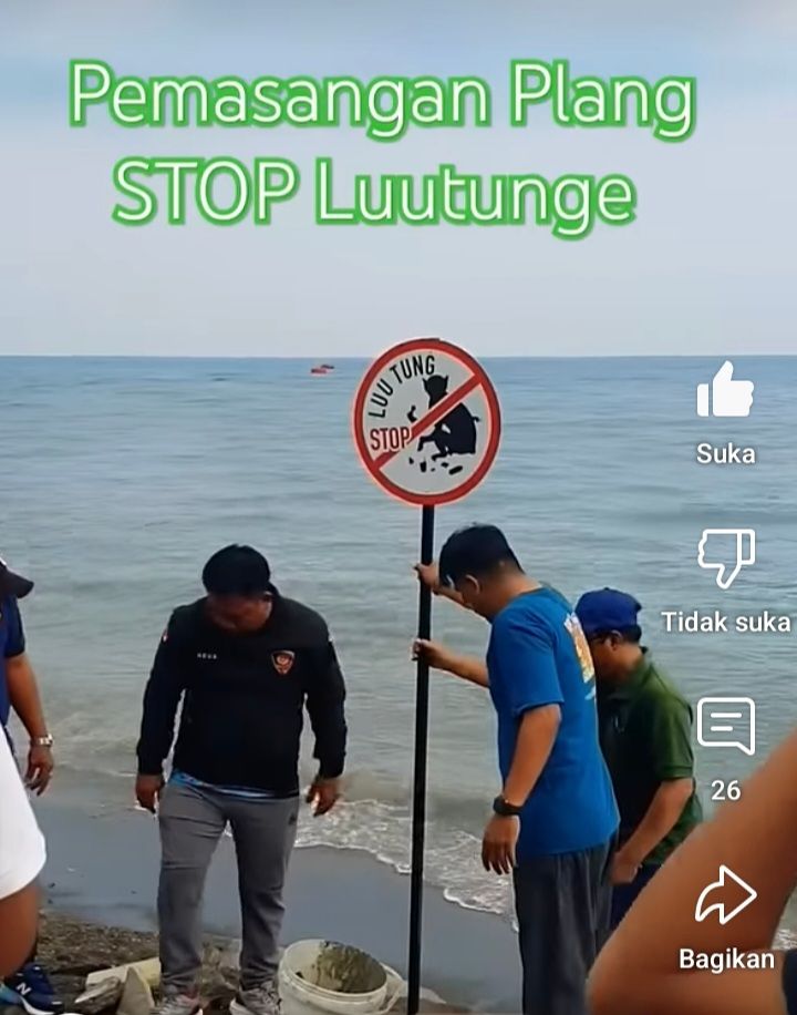 Pemasangan plang STOP Luutung buka sini